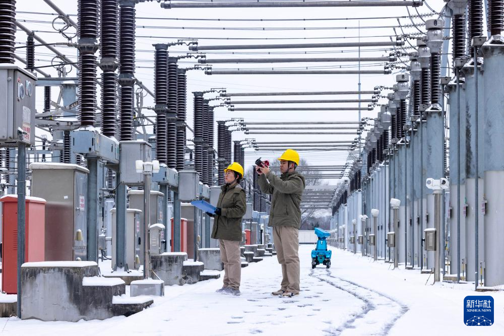 1月20日,国网泰州供电公司运维人员使用机器人等设备对变电站进行雪后巡视。