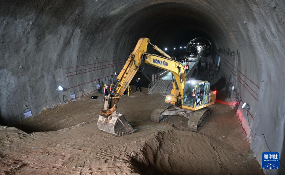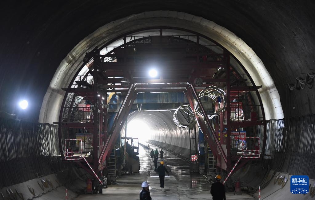 1月21日,中铁十二局施工人员在漳汕高铁马金山隧道内作业。