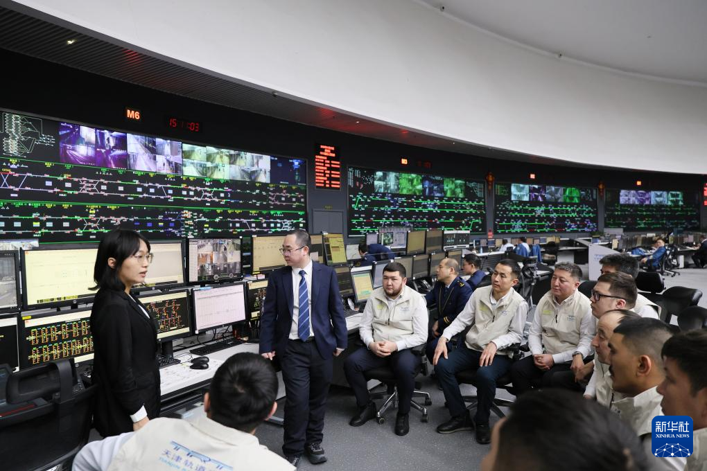 1月23日,哈萨克斯坦学员在天津轨道交通集团调度指挥中心学习。