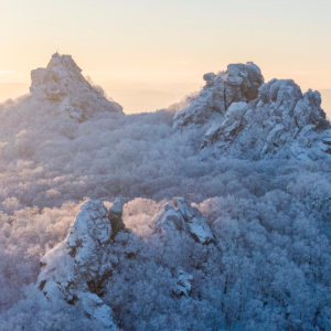 1月25日晨,位于黑龙江省双鸭山市境内的黑龙江七星山国家森林公园出现雾凇景观,朝晖映射下,霜华满山,蔚为壮观。