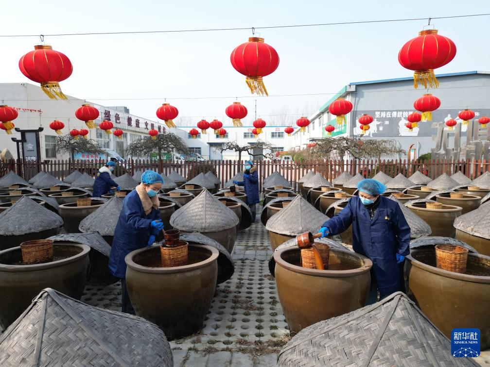 新春临近,齐鲁大地年味渐浓。在山东省滕州市的传统酱油酿造基地,数百口酱缸在冬日暖阳下整齐列阵,酿酱工人手持工具娴熟翻晒,琥珀色的酱汁在陶缸中泛起细腻涟漪。经过日晒夜露的酿造,浓郁酱香裹挟着麦香与豆香在晒场弥漫,交织成独特的年味。这些承载着传统年味的酱油将装车发往各地,为千家万户的年夜饭增添醇厚滋味。