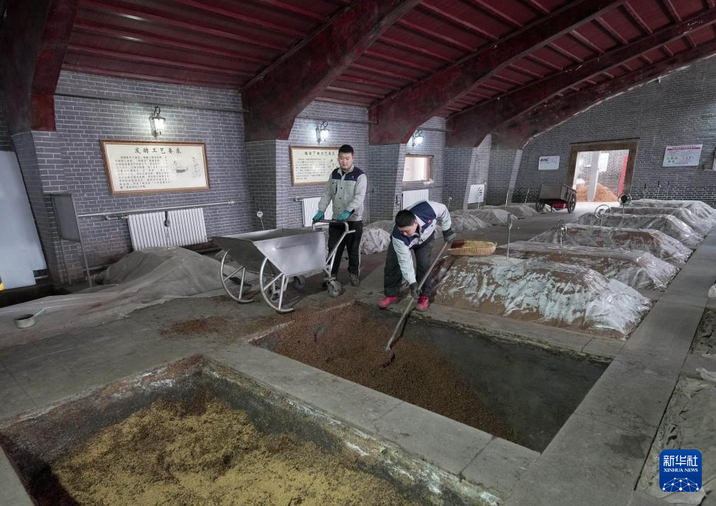 1月28日,工人在河北省平泉市承德避暑山庄企业集团股份有限公司的“涌泰泉古窖池”车间工作。