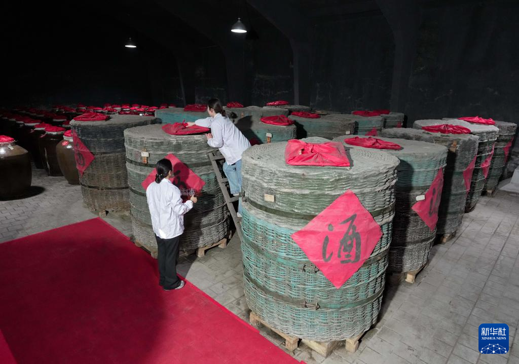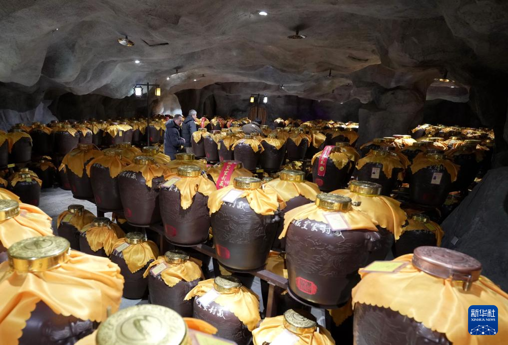 1月27日,工人在河北省丰宁满族自治县承德九龙醉酒业股份有限公司酒窖工作。
