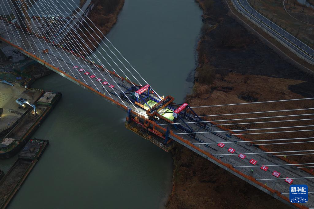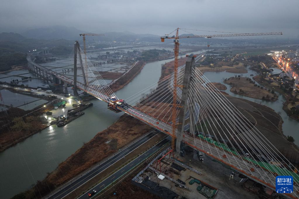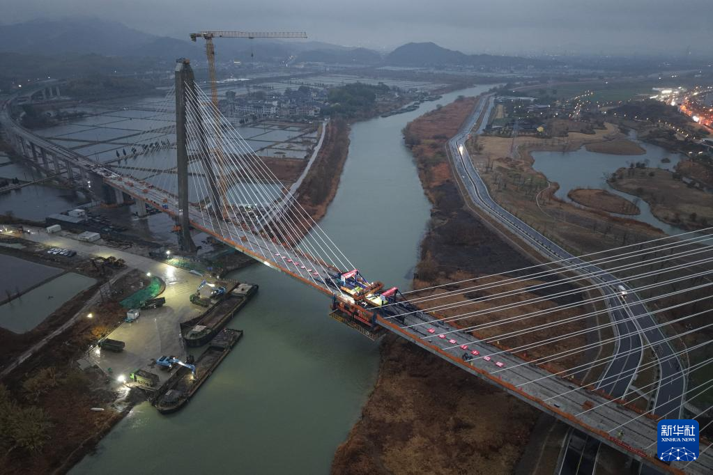 1月30日晚,杭州至德清市域铁路跨东苕溪斜拉桥顺利合龙,标志着全线桥梁主体工程全部完成,为建成通车奠定坚实基础。