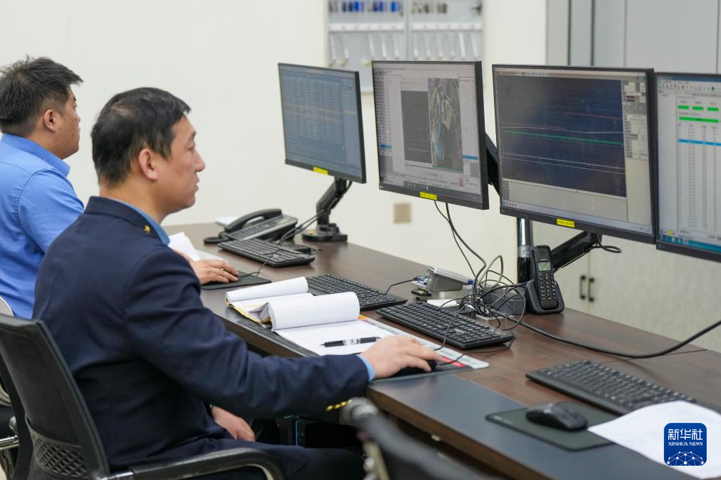 在中国铁路哈尔滨局集团有限公司哈尔滨动车段管控办公室,电务段信号工人对当日的动车组ATP列车超速自动防护系统数据开展分析工作(1月31日摄)。