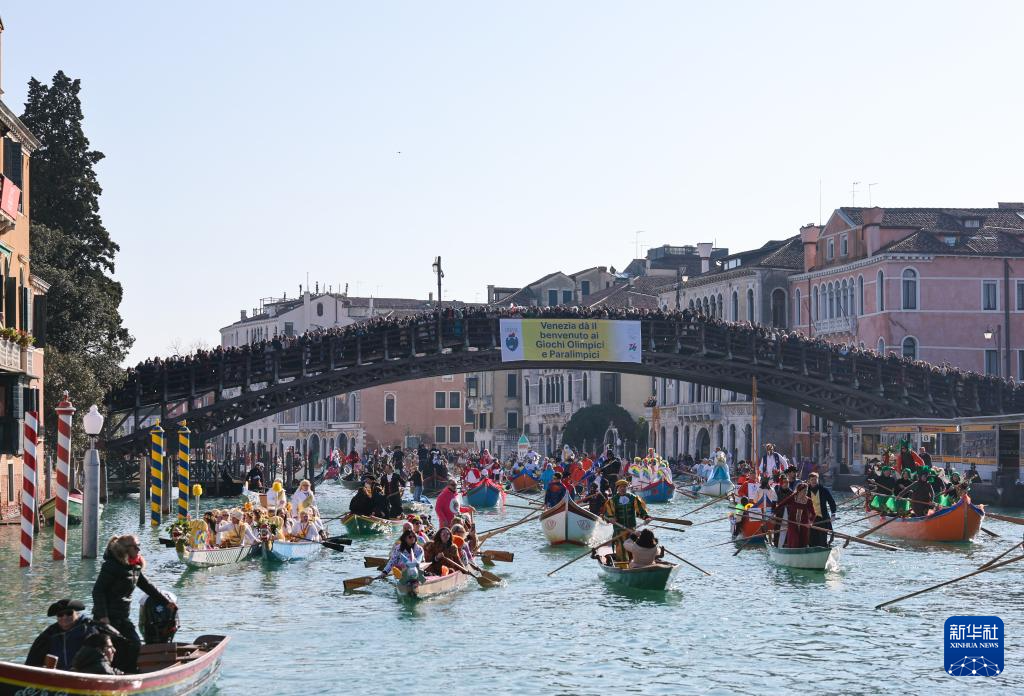 当日,2026年威尼斯狂欢节水上巡游在意大利威尼斯运河上举行。意大利威尼斯狂欢节于1月31日至2月17日举行。威尼斯狂欢节是世界上历史最久、规模最大的狂欢节之一,以面具文化和华丽服饰著称。