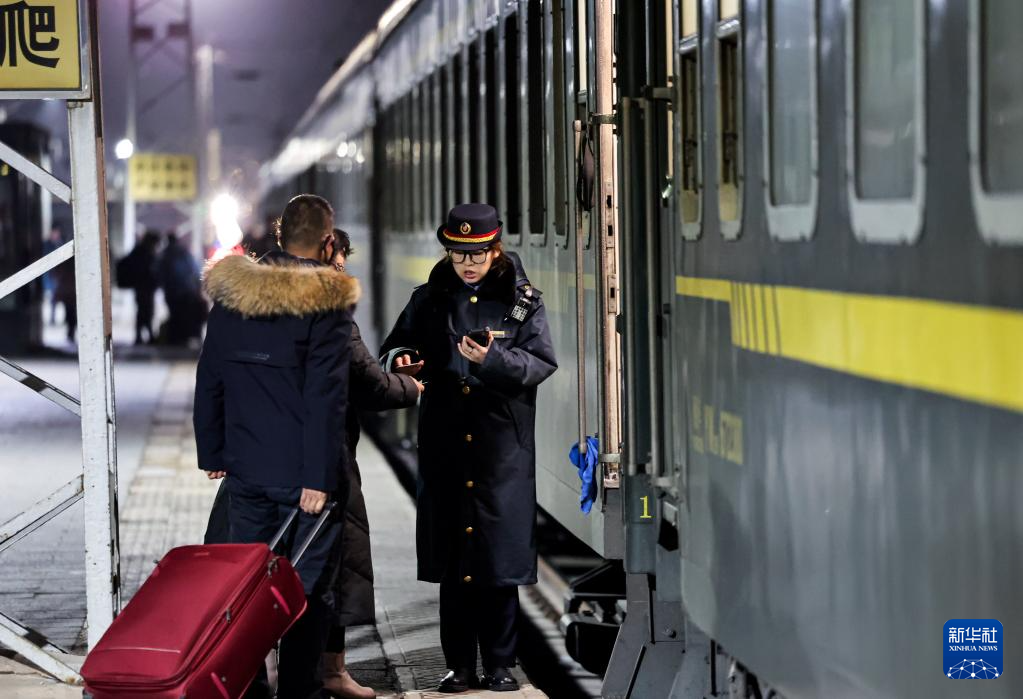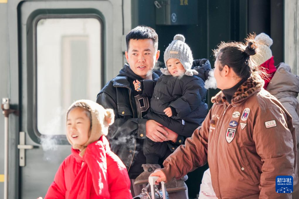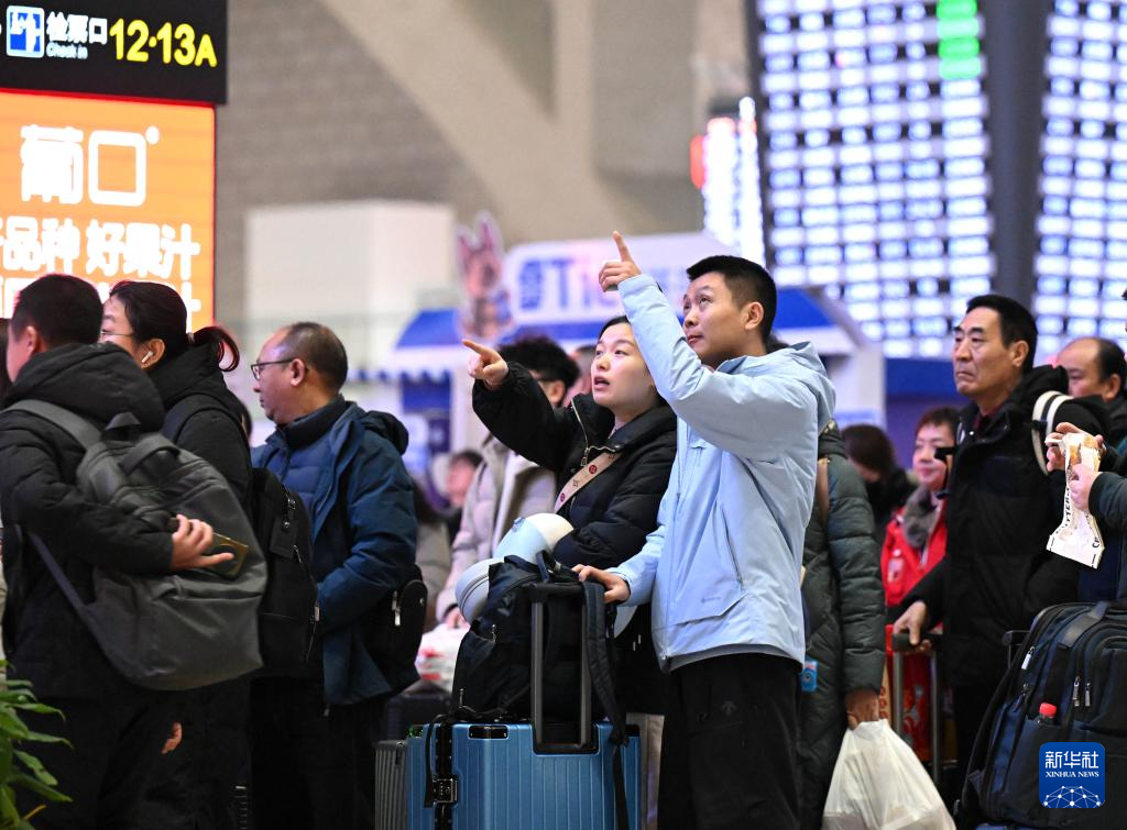 2月2日,旅客在哈尔滨火车站乘车出行。