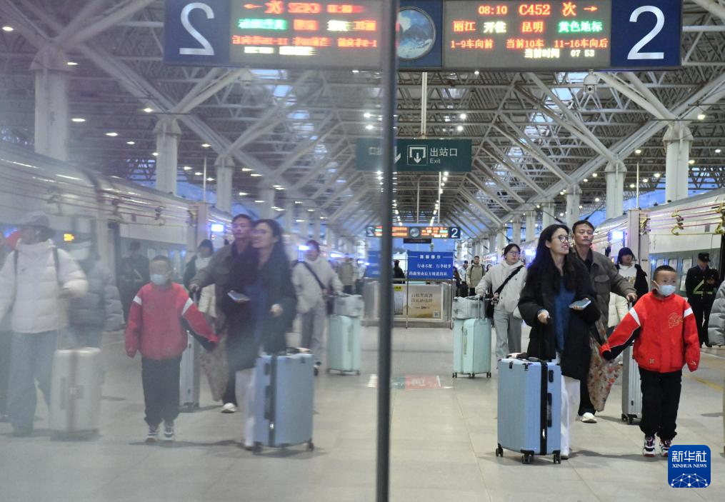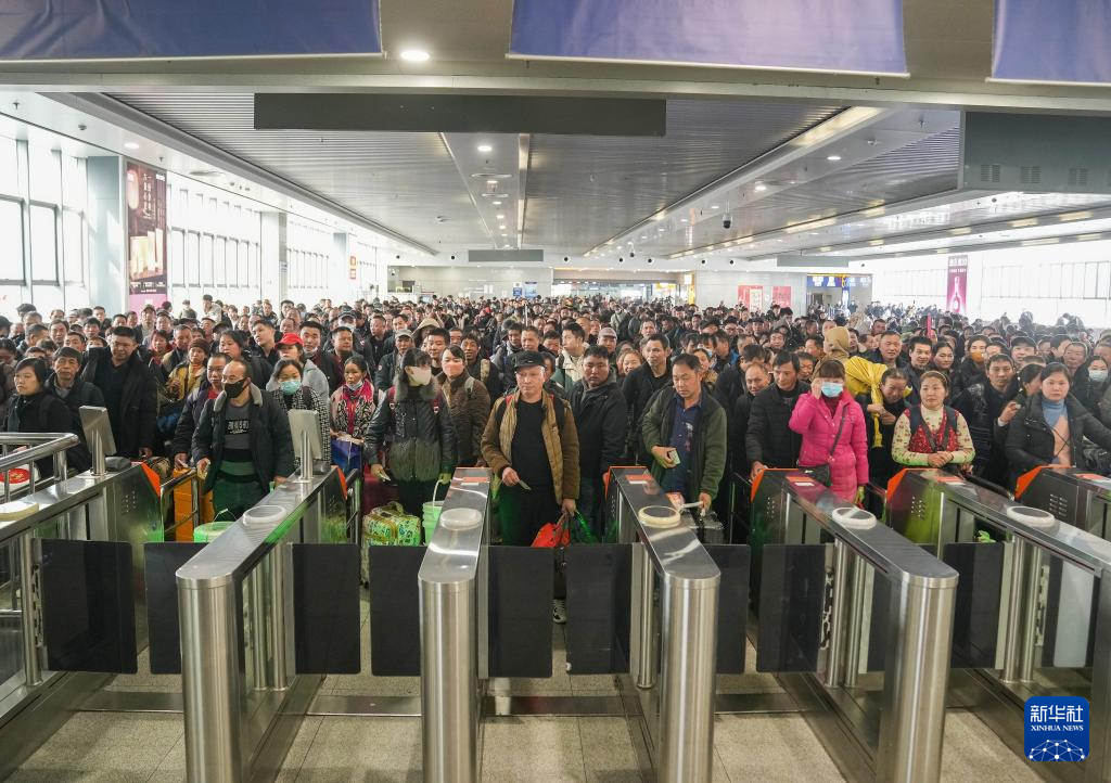 2月2日,旅客在沪昆高铁贵州铜仁南站转乘。