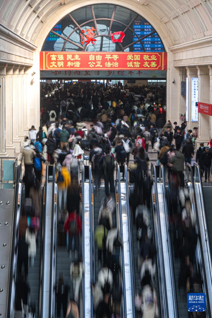 2月2日,在湖北省武汉市汉口火车站,旅客进站乘车。