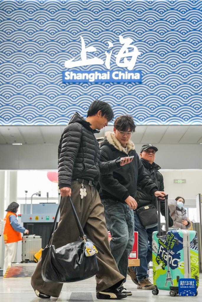 2月2日,旅客在上海火车站候车大厅内等候检票上车。