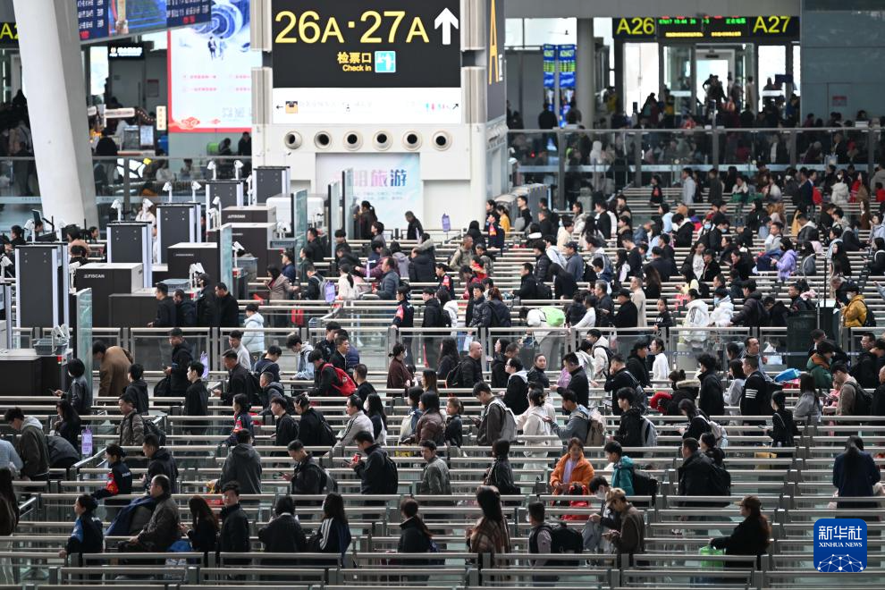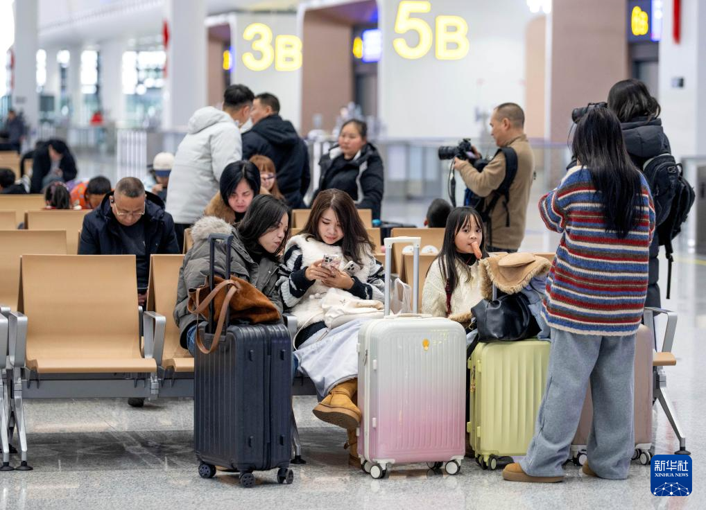 2月2日,旅客在重庆东站候车大厅等候上车。