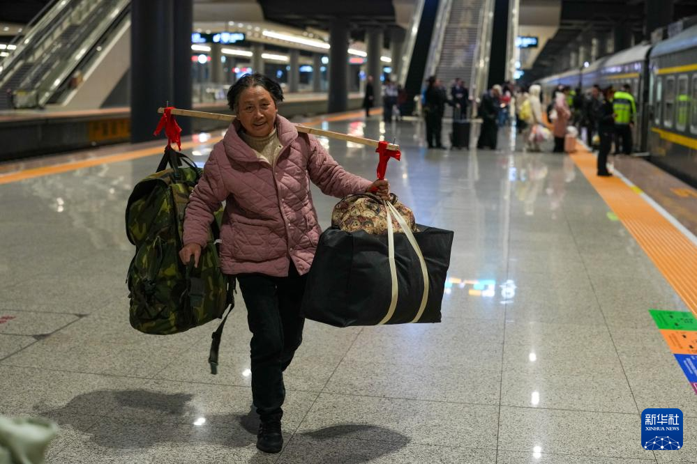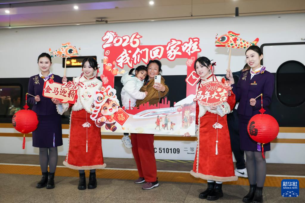 2月1日深夜,在广州白云站,乘坐K4232次列车的旅客们挥手告别。2月2日凌晨0时01分,开往四川达州的K4232次列车缓缓驶离广州白云站,这是2026年粤港澳大湾区开出的首趟春运列车。