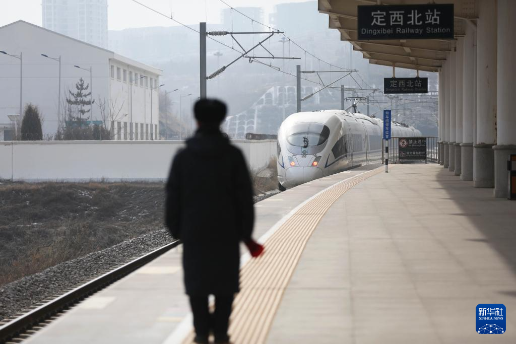 2月2日,宝兰高铁甘肃定西北站的工作人员在送车。