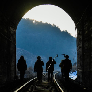 2月3日,中国铁路太原局集团有限公司太原工务段榆社桥隧车间的“打冰队”行走在隧道内。