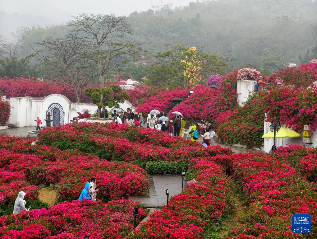 2月4日,游人在广西南宁市青秀山景区赏花游玩。
