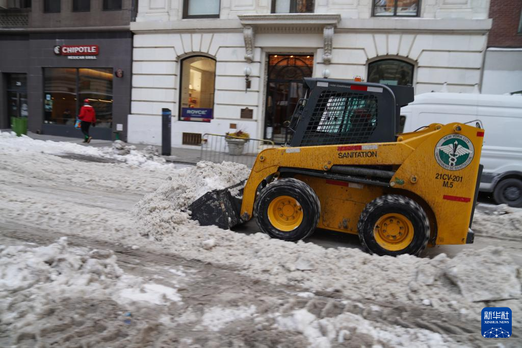 2月7日,一辆铲雪车在美国纽约清理积雪。