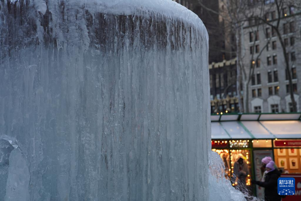 这是2月7日在美国纽约拍摄的结冰的喷泉。