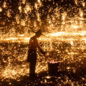 近日,首届“浦东中国年味节”在上海市浦东新区黄浦江畔举行,非遗“打铁花”成为夜色中一道亮丽的风景线。