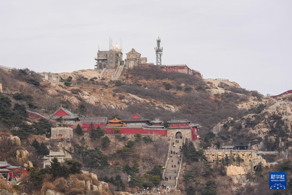 2月5日拍摄的位于泰山日观峰峰顶的泰山气象站(无人机照片)。