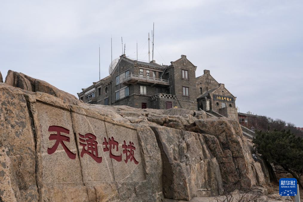 2月6日拍摄的位于泰山日观峰峰顶的泰山气象站。