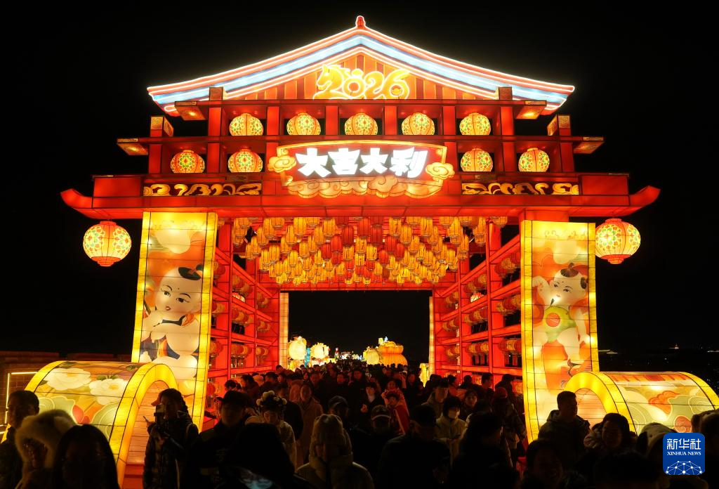 2月10日,2026年“正定古城过大年”非遗展演暨古城灯会在河北省石家庄市正定古城开幕,吸引众多游客前来游玩。