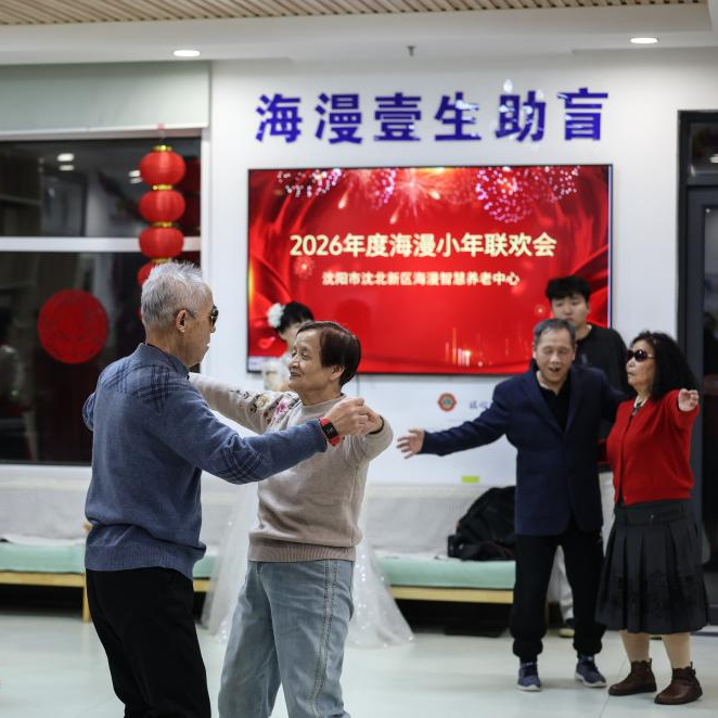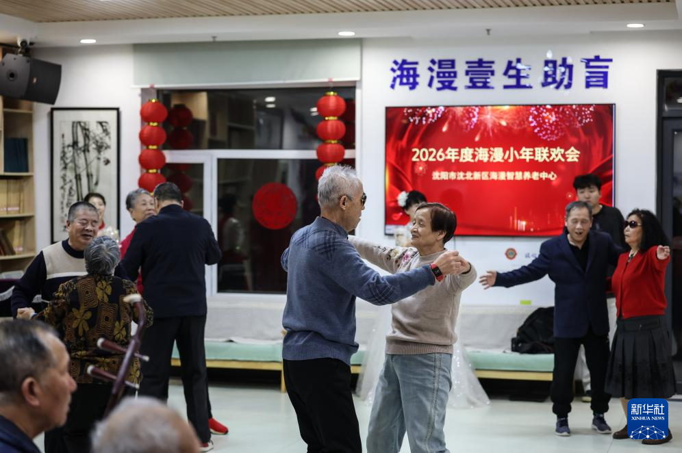 2月10日北方小年夜,辽宁省沈阳市沈北新区的一家盲人养老院——沈阳海漫智慧养老中心内,一场联欢会温情上演。作为特色盲人养老机构,这里的老人们虽无法看到表演的画面,却能在声声暖意中感受到别样年味。养老院工作人员身着礼服,与老人们一同歌唱、互动,用悠扬乐曲与欢快歌声搭建起温暖的情感桥梁。