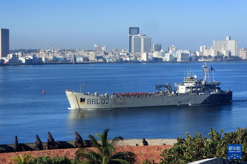 2月12日,在古巴首都哈瓦那,一艘来自墨西哥的人道主义援助船驶入哈瓦那港。