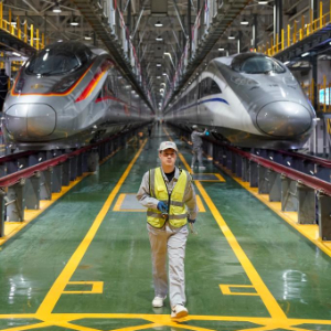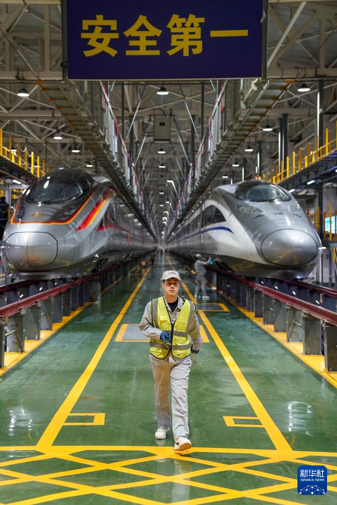 在太原动车组运用所检修库,鄂明一路小跑,赶往下一个故障点(2月13日摄)。