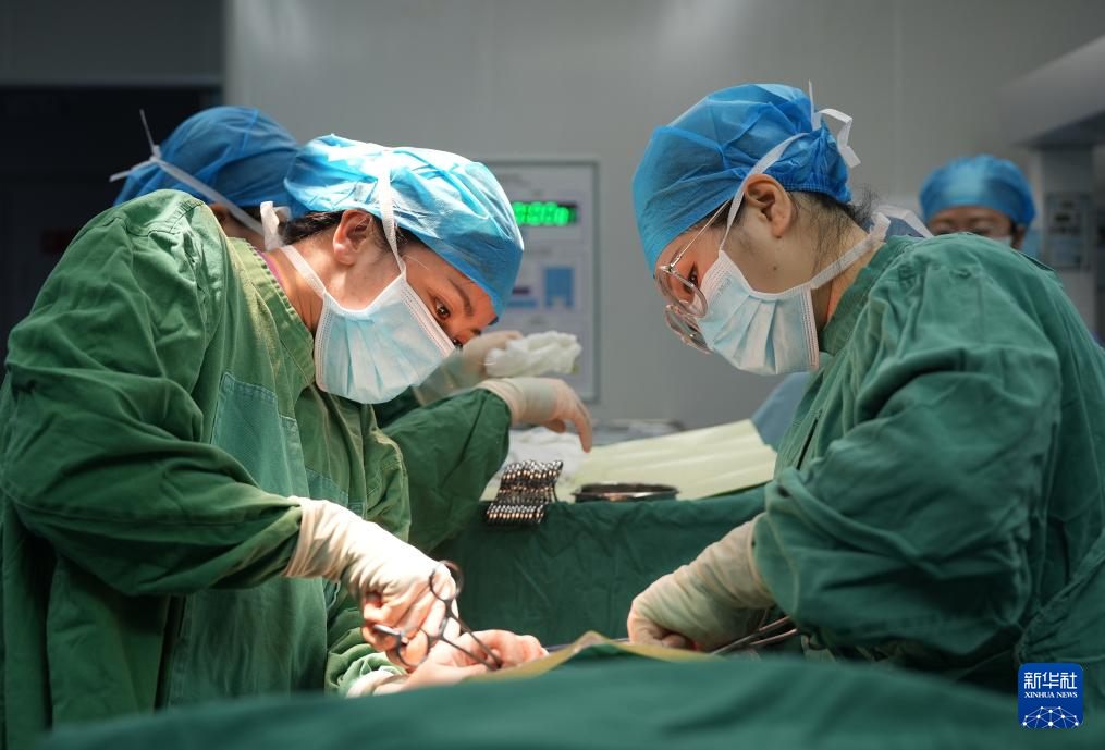 2月16日,在广西柳州市融水苗族自治县人民医院,医护人员为患者做手术。
