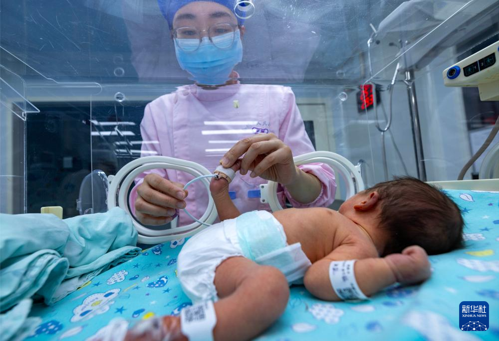 2月16日,在南京医科大学附属泰州人民医院新生儿科,护士为新生儿护理。