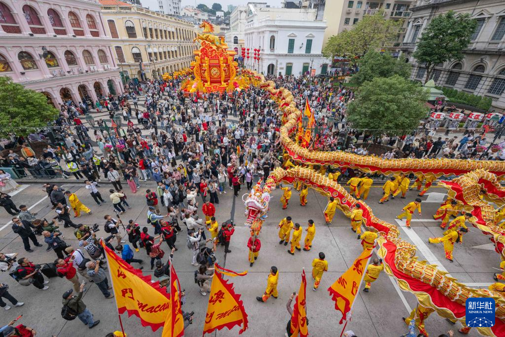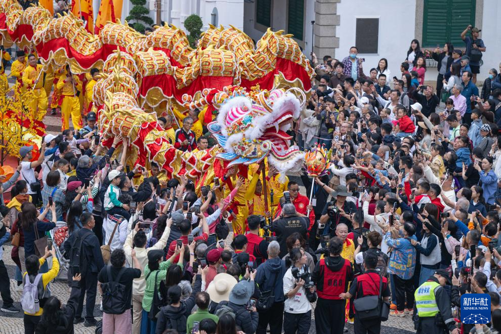 农历大年初一,澳门特区旅游局在大三巴牌坊及议事亭前地举办“欢乐春节——2026年龙腾舞跃贺新春”社区巡演活动,并安排长238米的大金龙在澳门多个主要景区巡游,营造浓浓节日氛围。