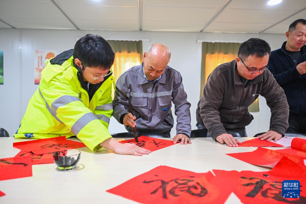 2月16日,在土耳其阿克萨拉伊省图兹湖地下天然气储库扩建项目二期工程营地,中工国际的职工在写福字。