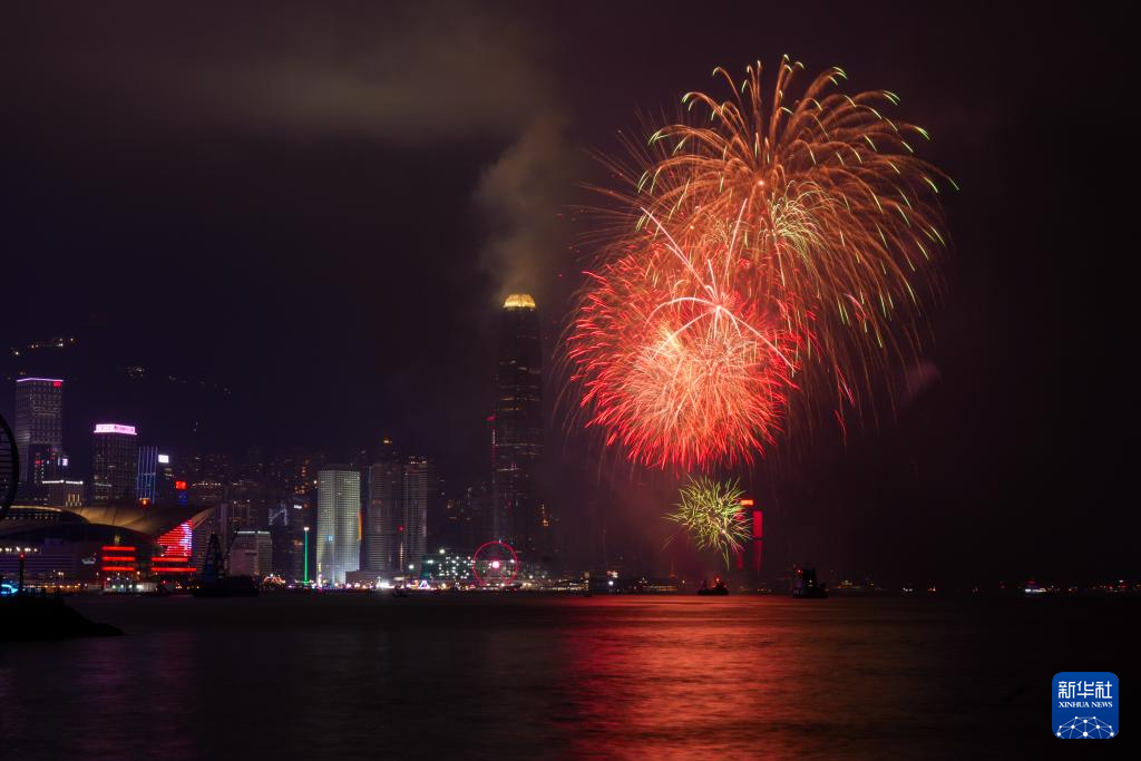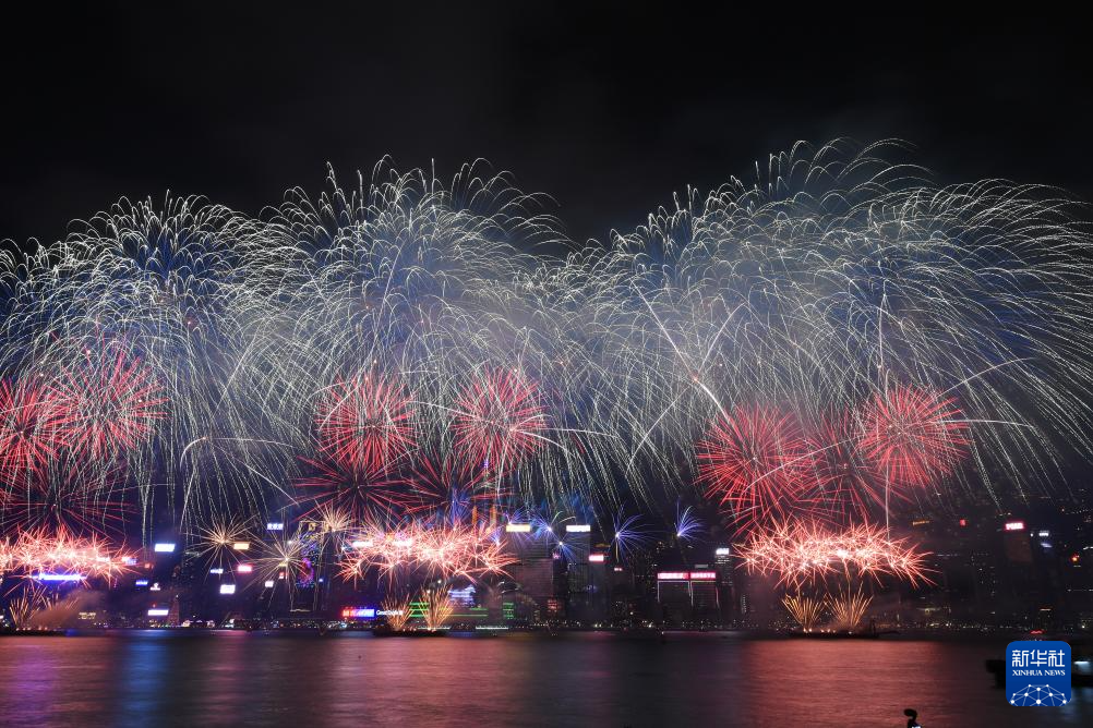 2月18日,香港举办农历新年烟花汇演,欢庆新春佳节。