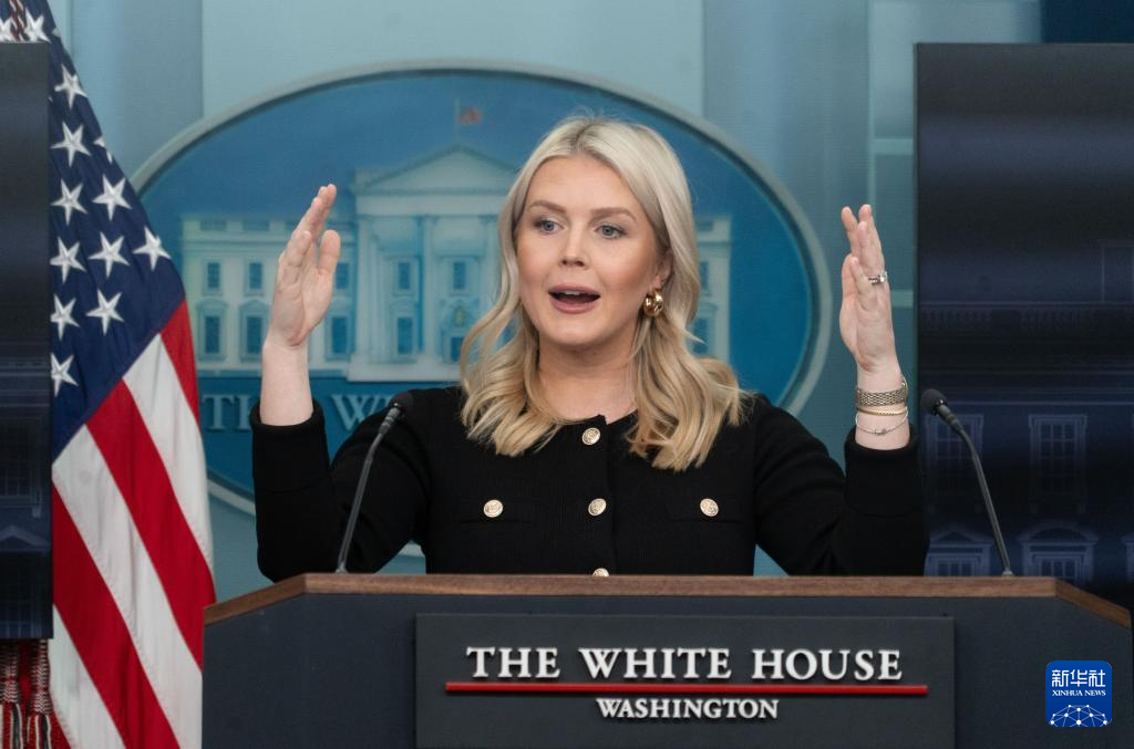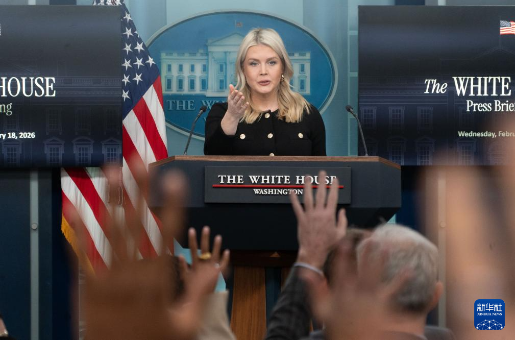 2月18日,在美国首都华盛顿,白宫新闻秘书莱维特出席记者会。