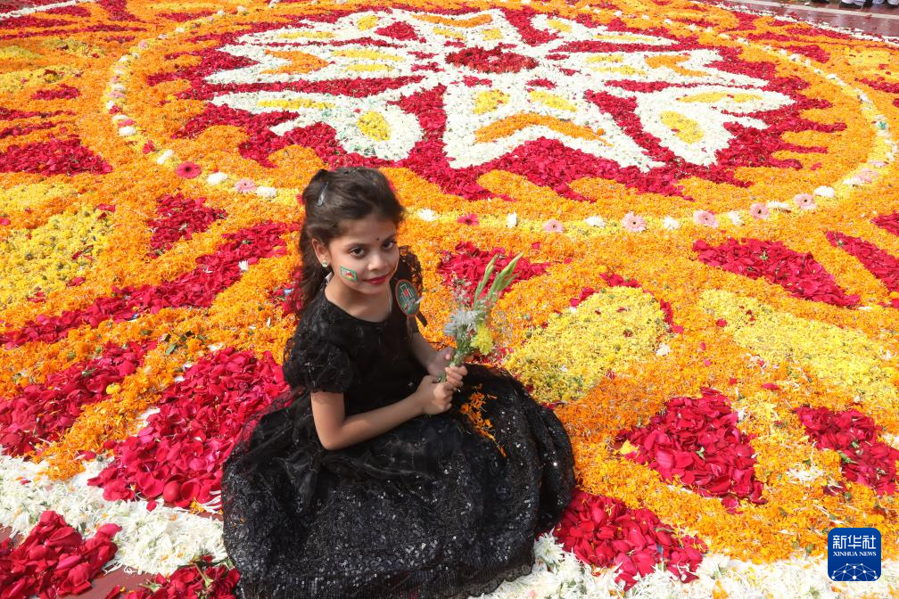2月21日,在孟加拉国首都达卡的语言烈士纪念碑前,一名儿童参加国际母语日纪念活动。