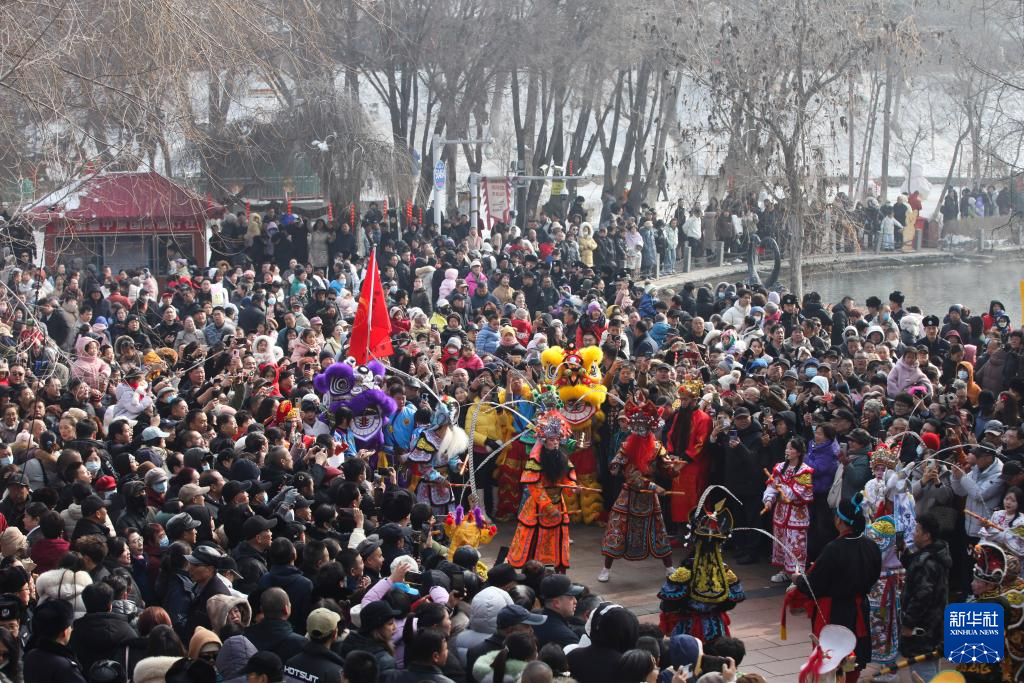 2月21日,观众在新疆乌鲁木齐市水磨沟区观看英歌舞表演。