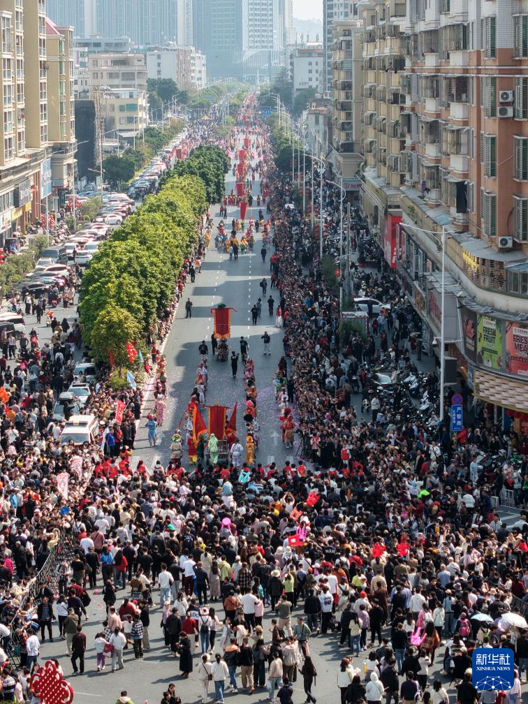 2月21日在广东汕头潮阳区拍摄的“2026年春节潮阳英歌嘉年华活动”(无人机照片)。