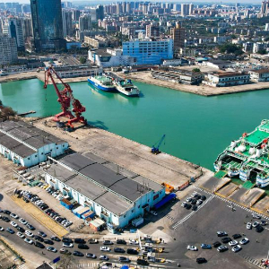 这是2月21日在海南省海口市秀英港拍摄的客滚船(无人机照片)。