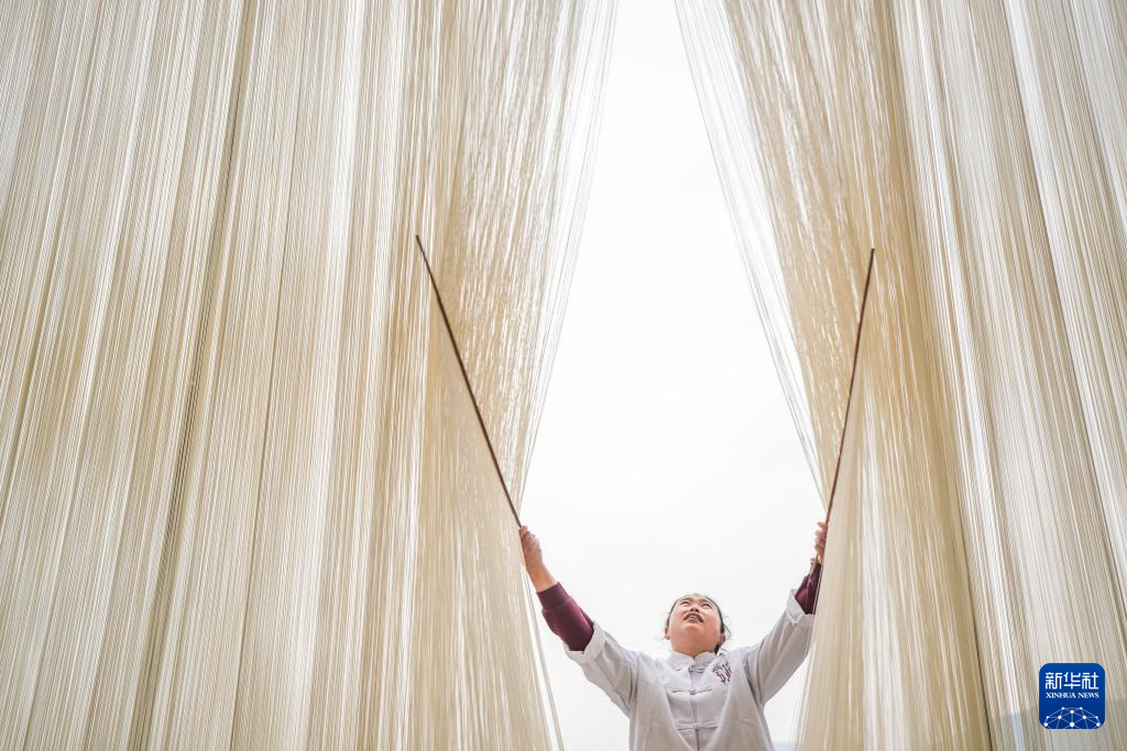 连日来,四川省德阳市中江县觉慧村村民抢抓晴好天气制作手工挂面,家家户户房前屋后晾晒的挂面如银丝垂落,非遗技艺在烟火气中活态传承。