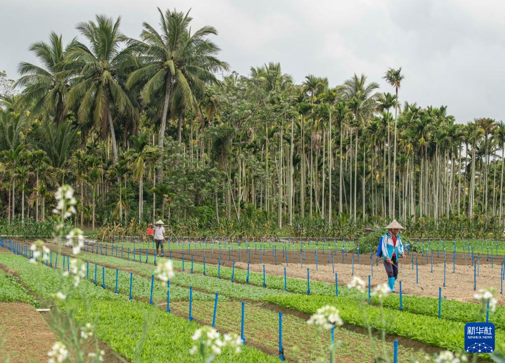 2月25日,农民在海南省琼海市嘉积镇南堀村的田里劳作。