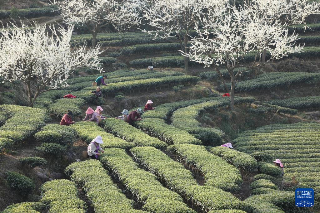 2月26日,茶农在四川省眉山市洪雅县止戈镇青杠坪村万亩生态茶园采摘春茶。
