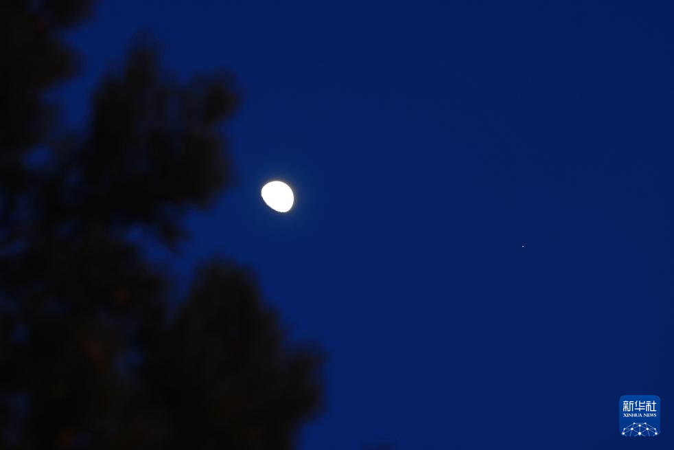 2月27日在黑龙江省齐齐哈尔市拍摄的木星伴月。