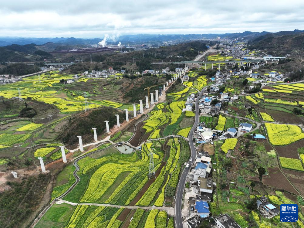 这是2月28日拍摄的瓮马铁路甲子田特大桥(无人机照片)。