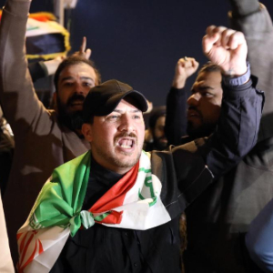 2月28日,民众在伊拉克首都巴格达举行示威,抗议美国和以色列军事打击伊朗。