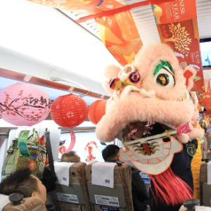元宵节来临之际,中国铁路哈尔滨局集团有限公司齐齐哈尔客运段担当的齐齐哈尔南开往天津西的G1280次列车上举行“闹元宵·话团圆”主题活动,车厢内张灯结彩,民族歌舞、舞狮、变脸等节目接连上演,让旅途充满节日温情。