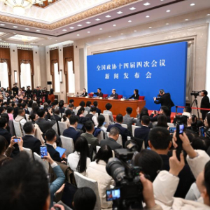 3月3日,全国政协十四届四次会议新闻发布会在北京人民大会堂举行。大会新闻发言人刘结一向中外媒体介绍本次大会有关情况并回答记者提问。这是记者在发布会上提问。