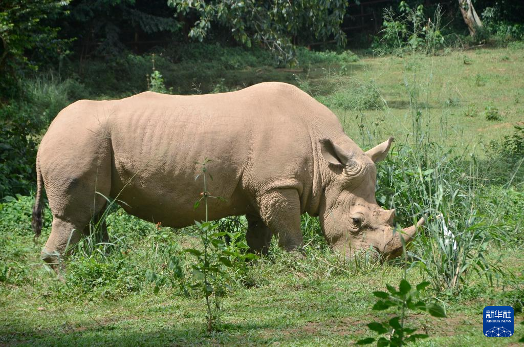 这是3月3日在位于乌干达恩德培的野生动物教育保护中心拍摄的白犀牛。