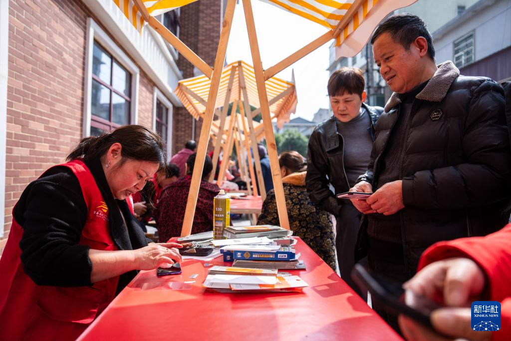 当日是第63个学雷锋纪念日,湖南省长沙市望城雷锋驿站举办“学雷锋·文明实践我行动”活动,来自各行各业的志愿者在雷锋驿站为市民提供免费配钥匙、缝纫衣物、小家电维修、义诊、义剪等便民服务,宣讲和践行雷锋精神。