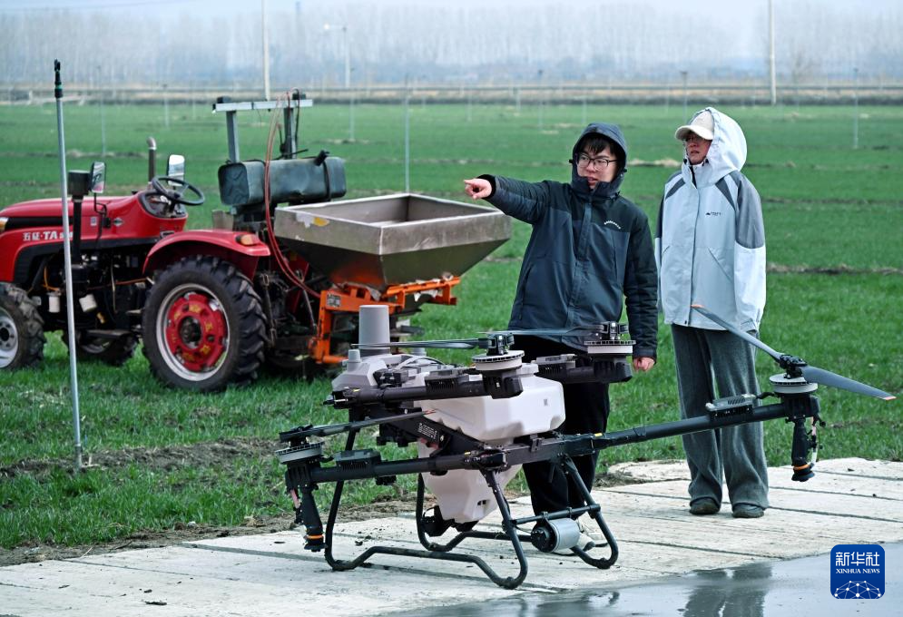 3月6日,在青岛市即墨区蓝村街道壮武村,飞手在规划植保无人机作业范围。
