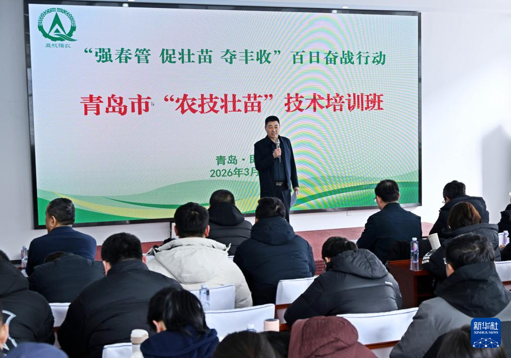 3月6日,在青岛市即墨区蓝村街道,人们在“农技壮苗”技术培训班上学习。